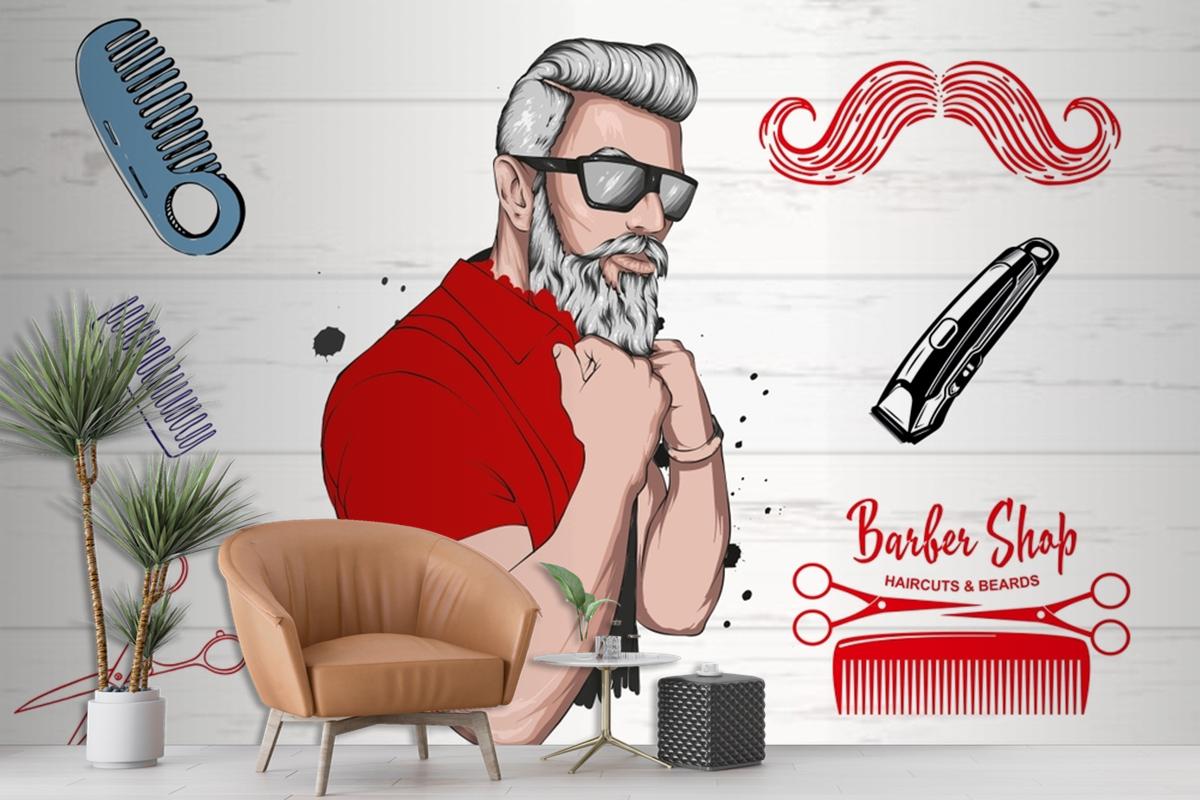 Kırmızı Tişörtlü Erkek Berber Kuaför Duvar Kağıdı