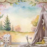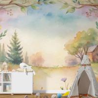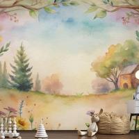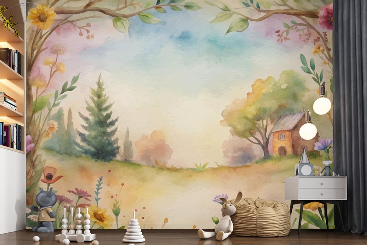 Kırsal Çocuk Odası Duvar Kağıdı Duvarında Kır Çiçeği Suluboya Arkaplan