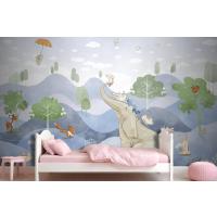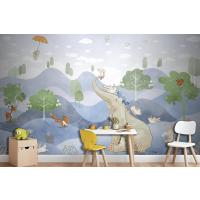 Kış Fil Tavşan Tilki Sulu Boya Çocuk Odası Duvar Kağıdı