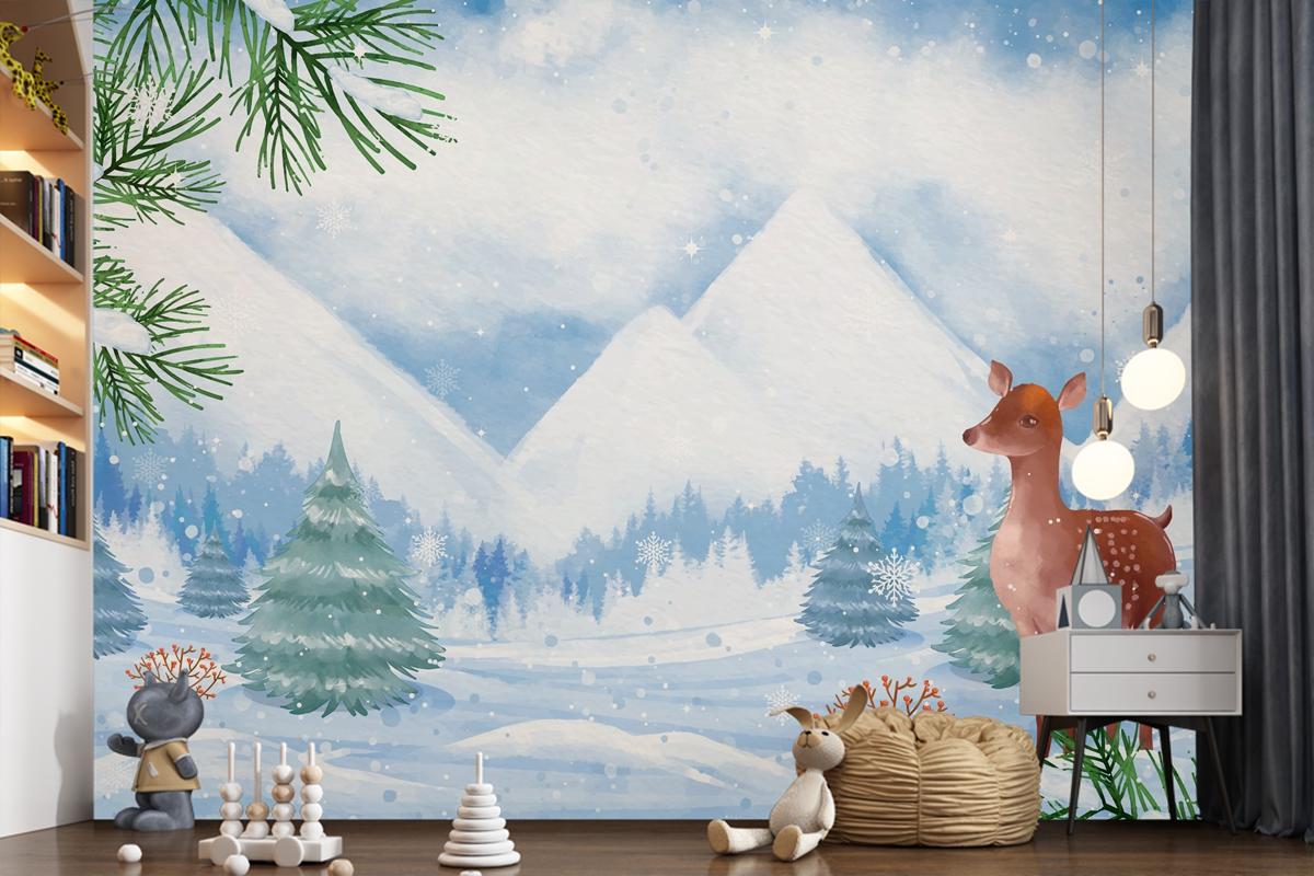 Kış Sezonu Kutlaması Çocuk Odası Duvar Kağıdı Için Suluboya Arka Plan