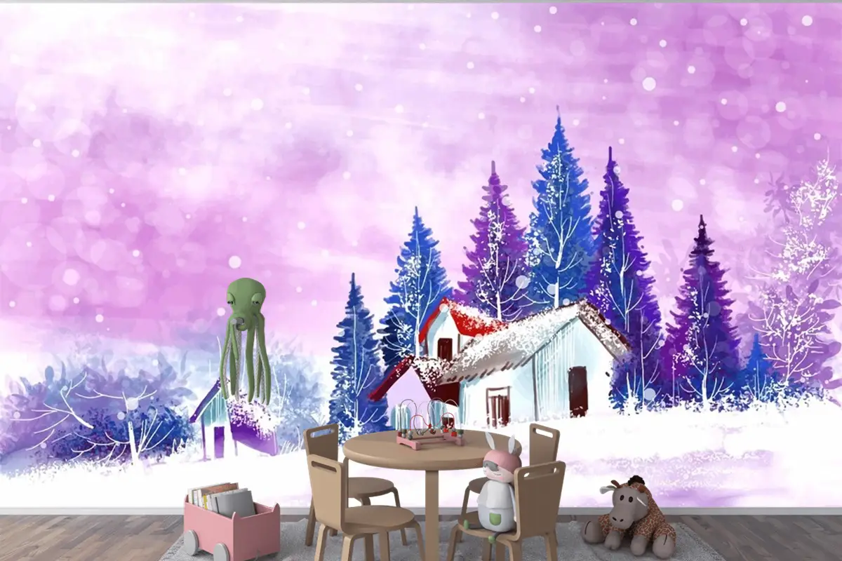 Kış Ve Yeni Yıl Tatilleri Için Manzara Noel Çocuk Odası Duvar Kağıdı