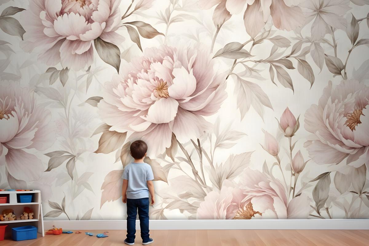 Kızlar Için Kreş Pastel Şakayık Suluboya Çiçek Çocuk Odası Duvar Kağıdı