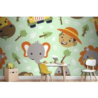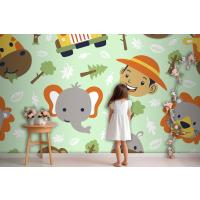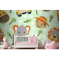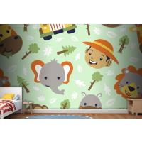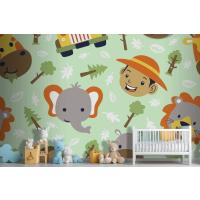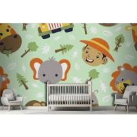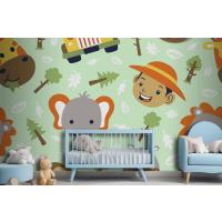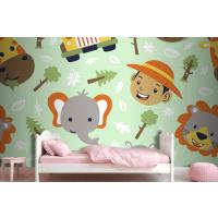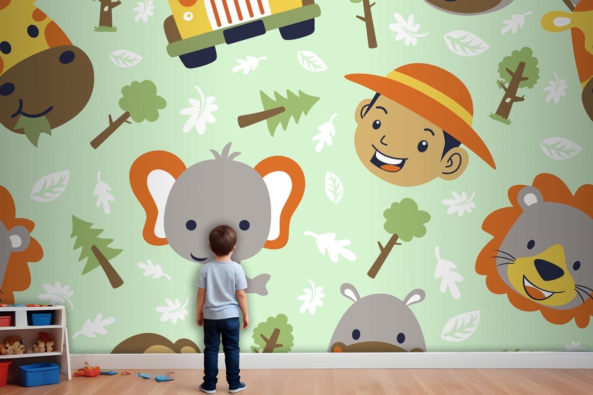Komik Safari Hayvanları Kafa Karikatürü Ve Kusursuz Desenli Küçük Çocuk Kafası Çocuk Odası Duvar Kağıdı