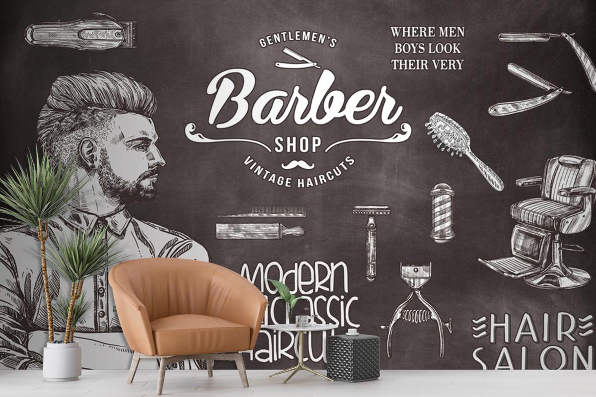 Koyu Arka Plan Berber Aletleri Vintage Duvar Kağıdı