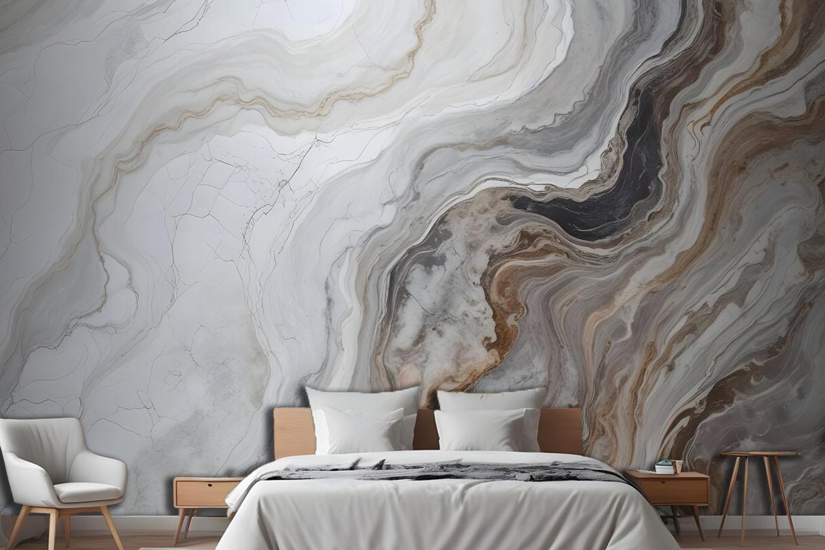 Koyu Mermer Gri Ve Kahverengi Dalgalar Yatak Odası Duvar Kağıdı