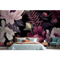 Koyu Suluboya Renkli Şakayık Çiçek Yatak Odası Duvar Kağıdı