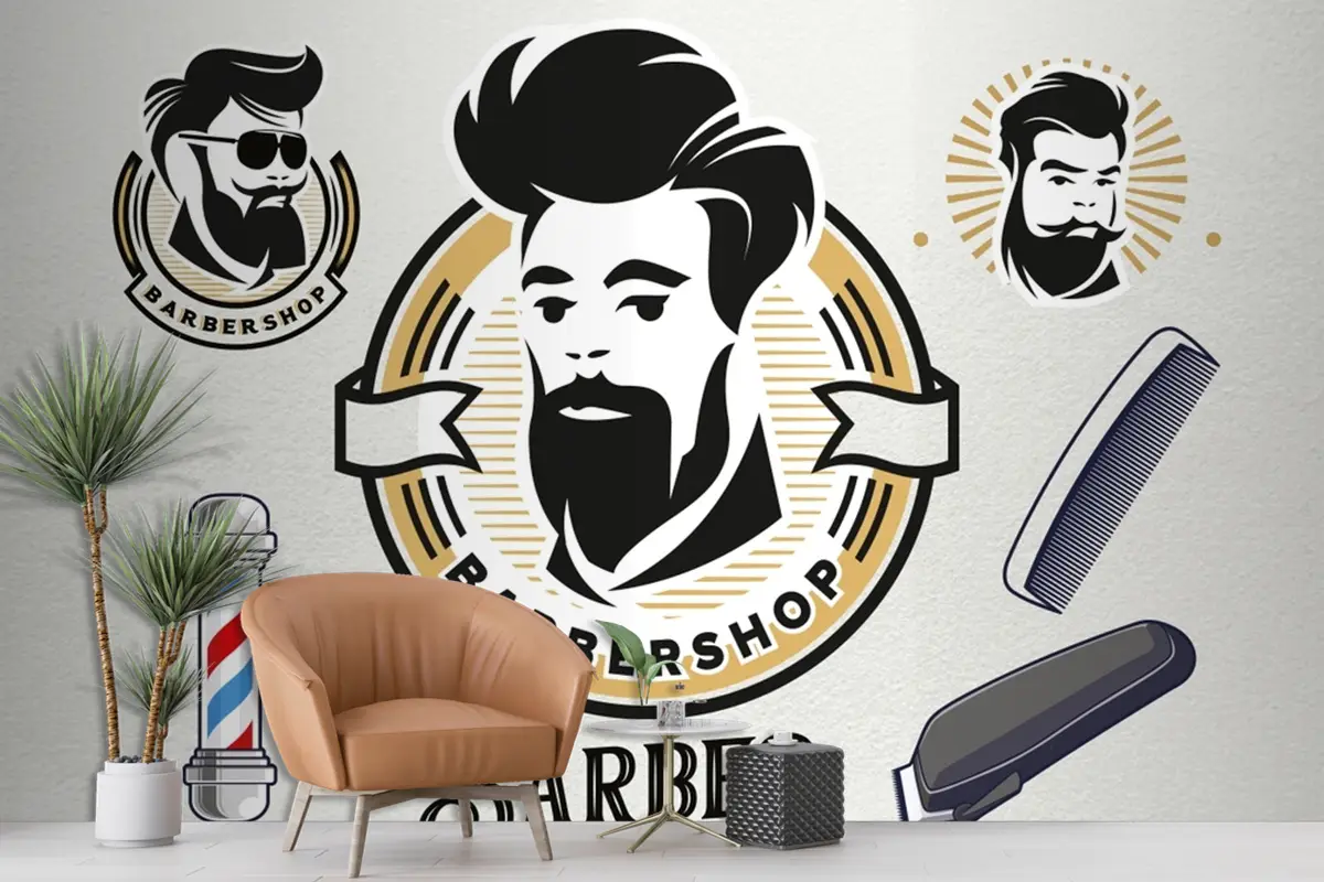 Krem Arka Plan Barbershop Duvar Kağıdı