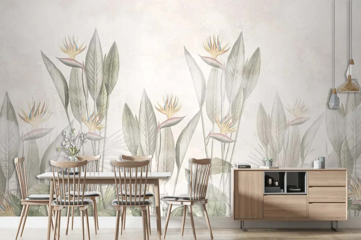 Krem Arka Plan Tropik Yapraklar Duvar Kağıdı