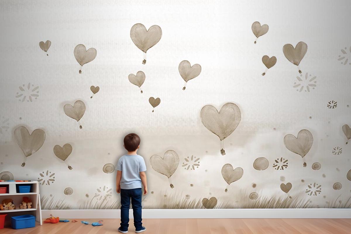 Krem Bej Balonlar Çocuk Odası Duvar Kağıdı