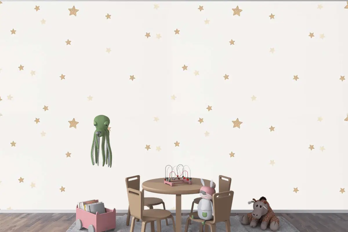 Krem Bej Yıldızlı Çocuk Odası Duvar Kağıdı