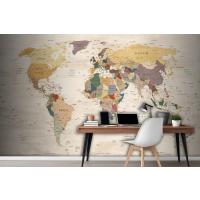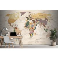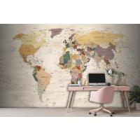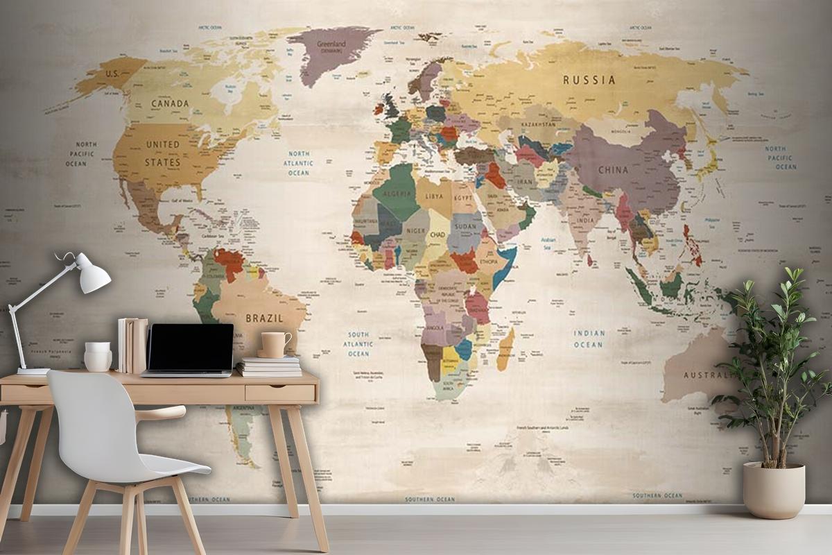 Krem Renk Zemin Detaylı Dünya Haritası Duvar Kağıdı