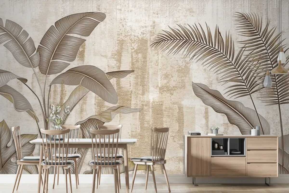 Krem Tonlarında Bitkisel Desen Vintage Duvar Kağıdı