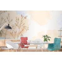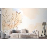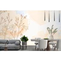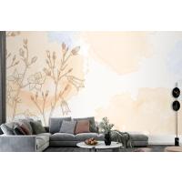 Krem Tozu Pastel Elle Çizilmiş Çiçekli Oturma Odası Duvar Kağıdı