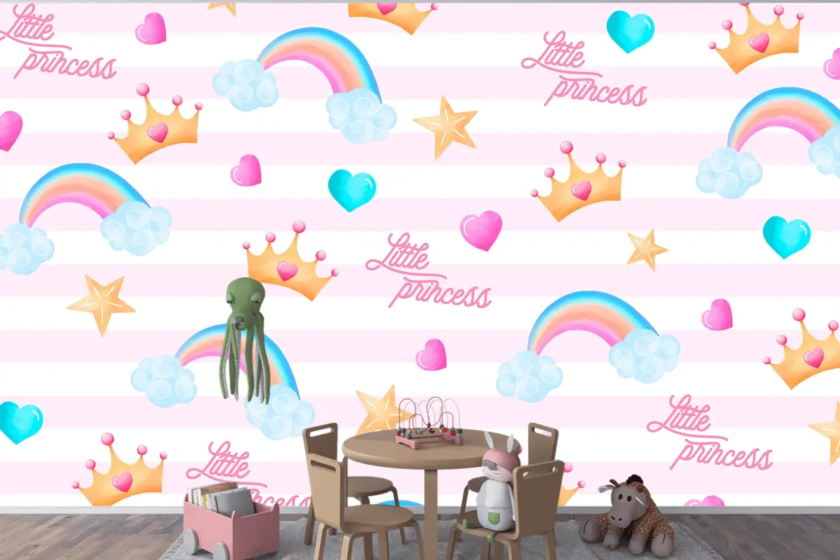 Küçük Bir Prenses Çocuk Odası Duvar Kağıdı İçin Güzel Unsurlarla Sevimli Desen