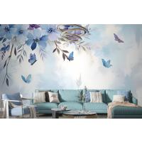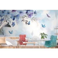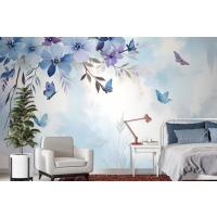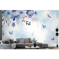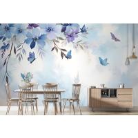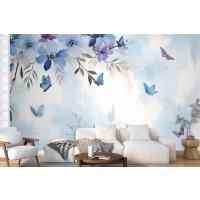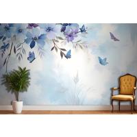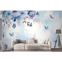 Küçük Kelebekli Mavi Mor Çiçek Duvar Kağıdı