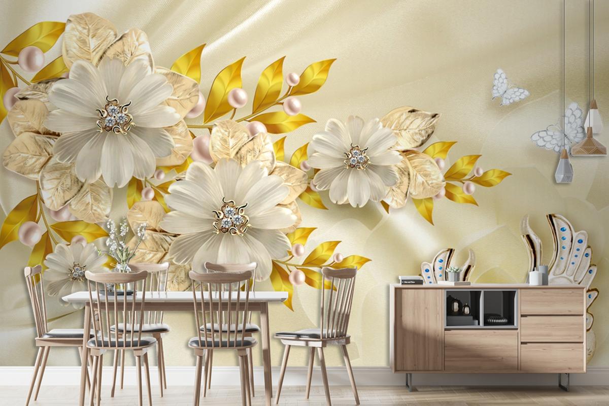 Kuğu Kelebek Çiçekli Arka Planlı 3D Duvar Kağıdı