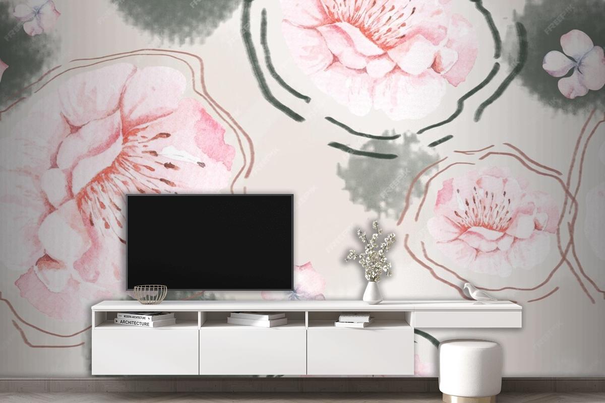Kumaş Oturma Odası Duvar Kağıdı İçin Suluboya Ile Gül Dikişsiz Desen