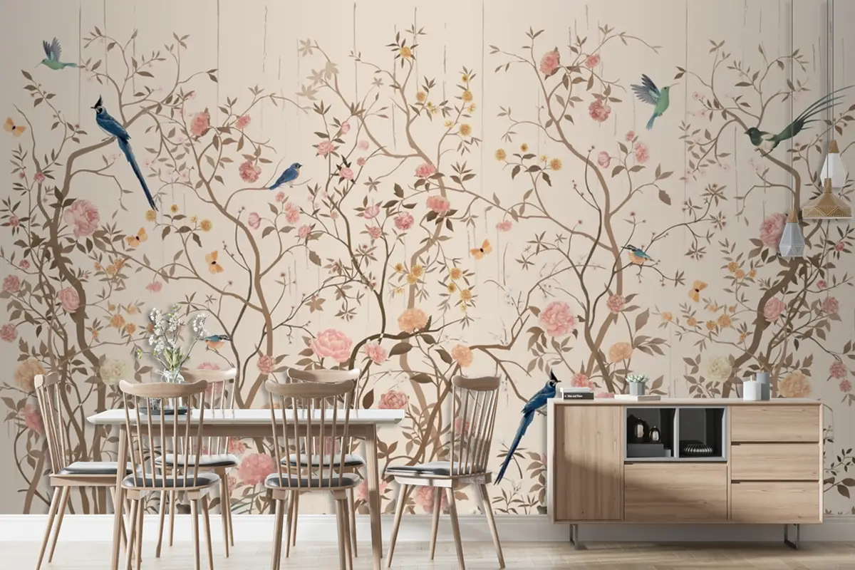 Kuşlar Ve Çiçeklerle Çin Duvar Kağıdı Duvar Kağıdı