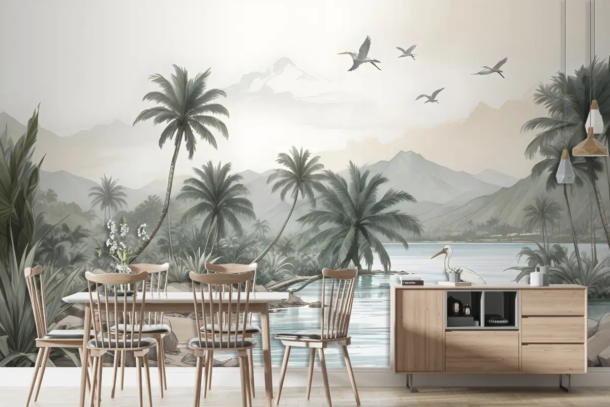 Kuşlarla Tropikal Doğa Manzarası Duvar Kağıdı
