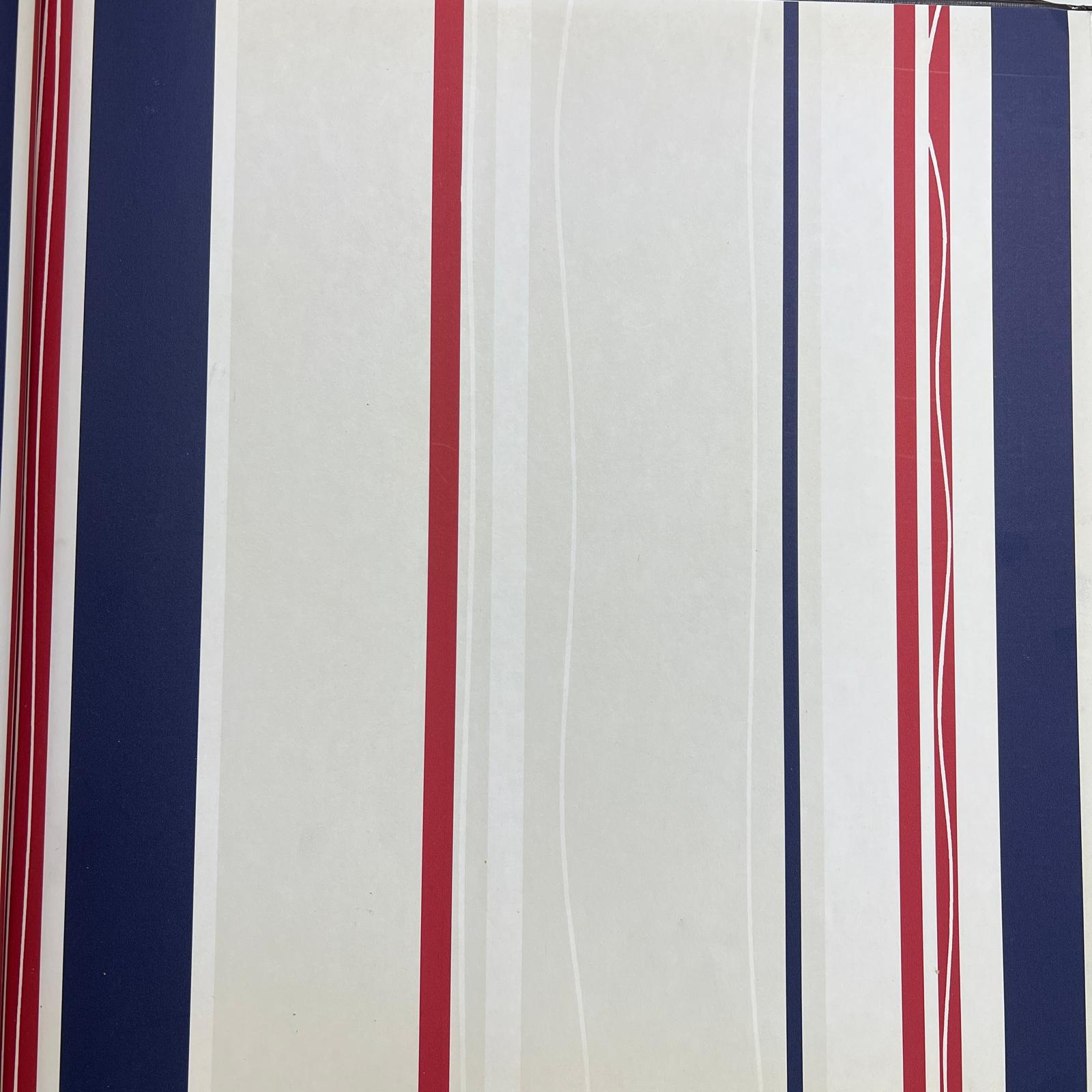 Lacivert Kırmızı Beyaz Bej Çizgili Desenli Duvar Kağıdı 2867
