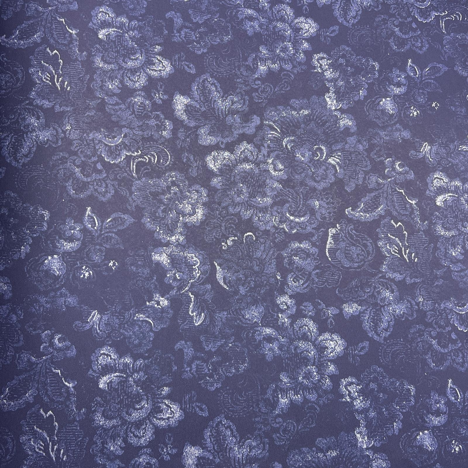 Lacivet Mavi Çiçek Desenli Duvar Kağıdı 113028