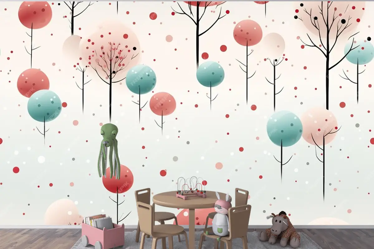 Ladin Ve Noel Ağaçları, Ay Yıldızları Ve Tilki Ile Kusursuz Desen Stilize Edilmiş Ve Grafik Çocuk Odası Duvar Kağıdı