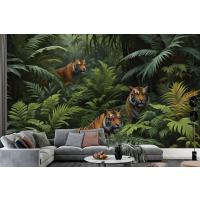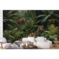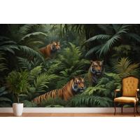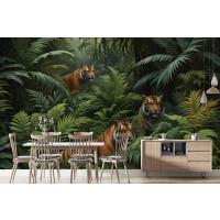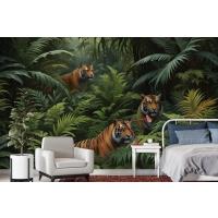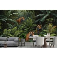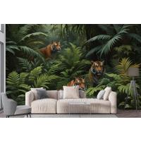 Leoparlı Karanlık Tropikal Ağaçlar Duvar Kağıdı