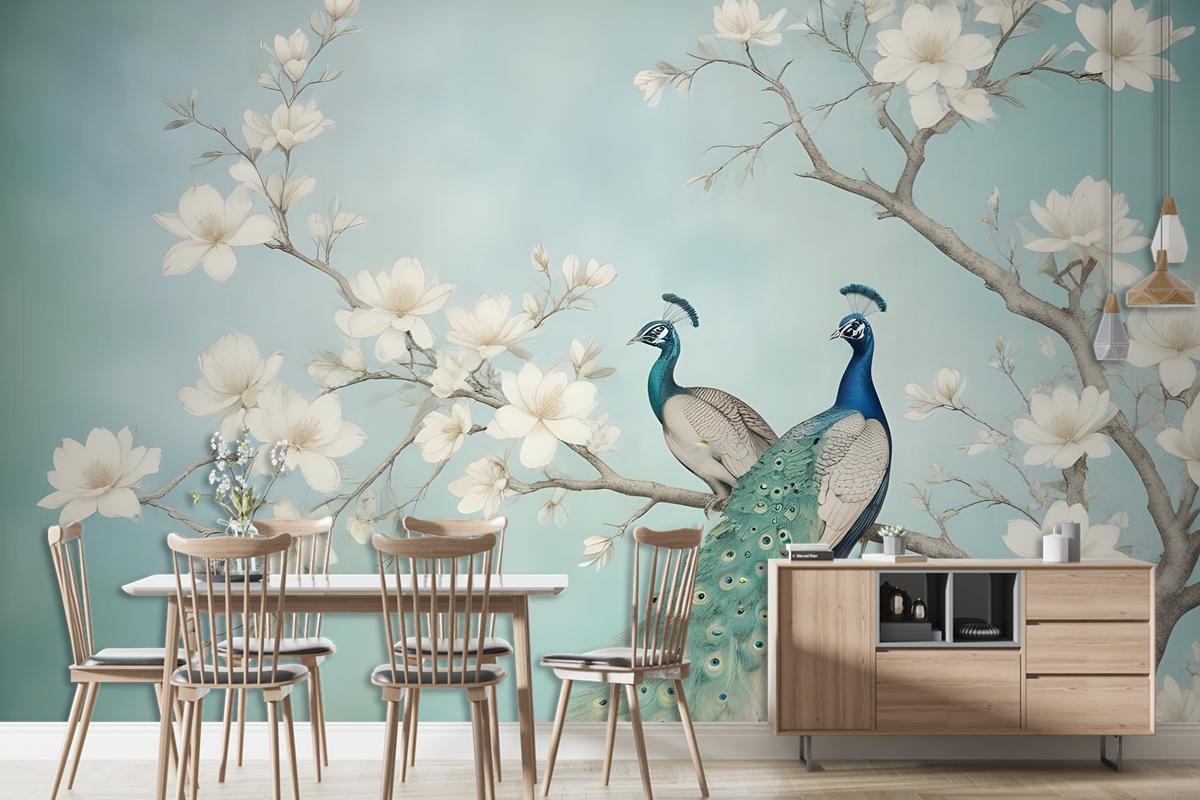 Manolya Çiçeği Ile Tavus Kuşu Duvar Kağıdı
