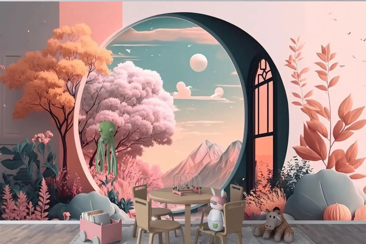 Manzara Manzaralı Pencere Çocuk Odası Duvar Kağıdı