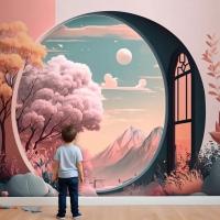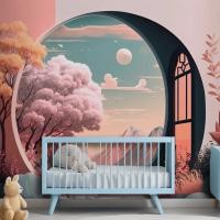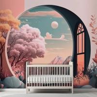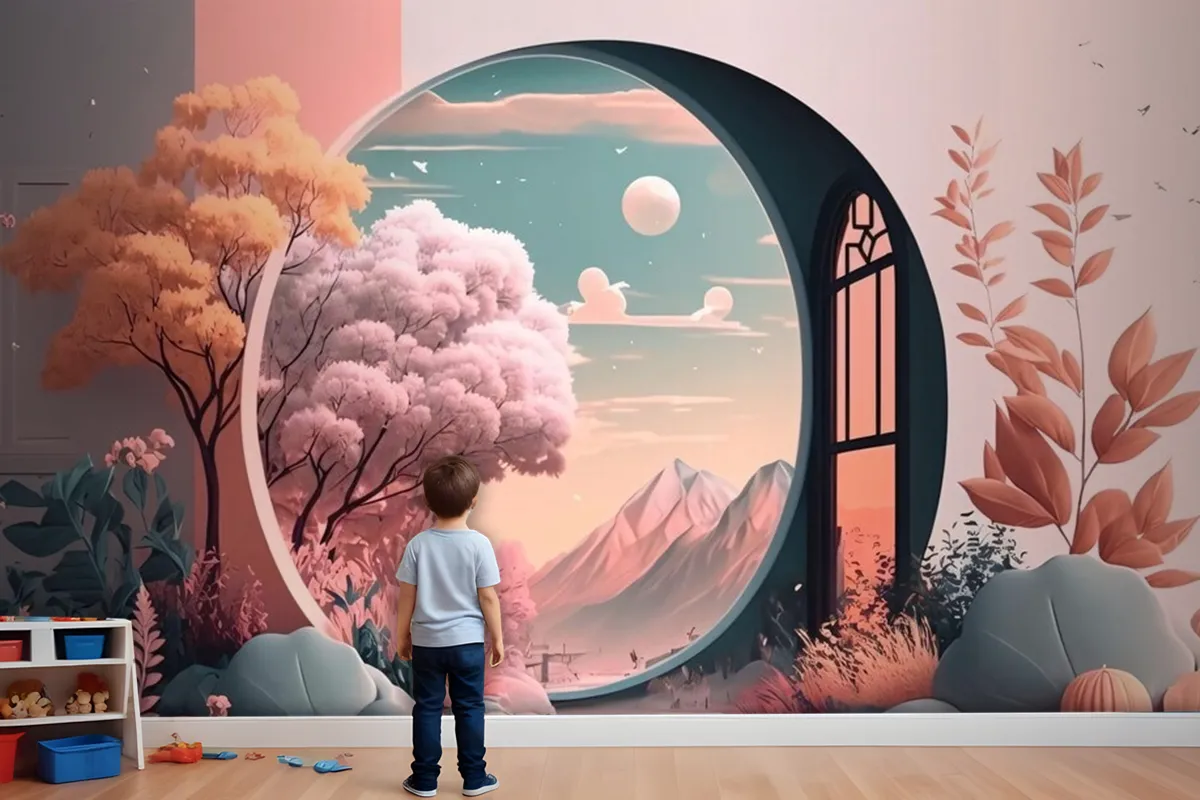 Manzara Manzaralı Pencere Çocuk Odası Duvar Kağıdı