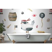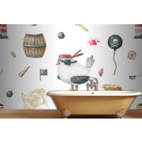 Martı Hazinesi Banyo Duvar Kağıdı Ile Korsan Dikişsiz Desen