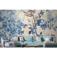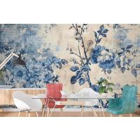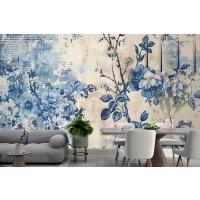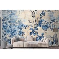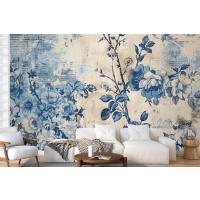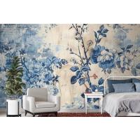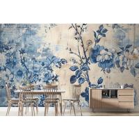 Mavi Beyaz Duvar Kağıdı Duvarında Mavi Beyaz Çiçek Baskısı Var