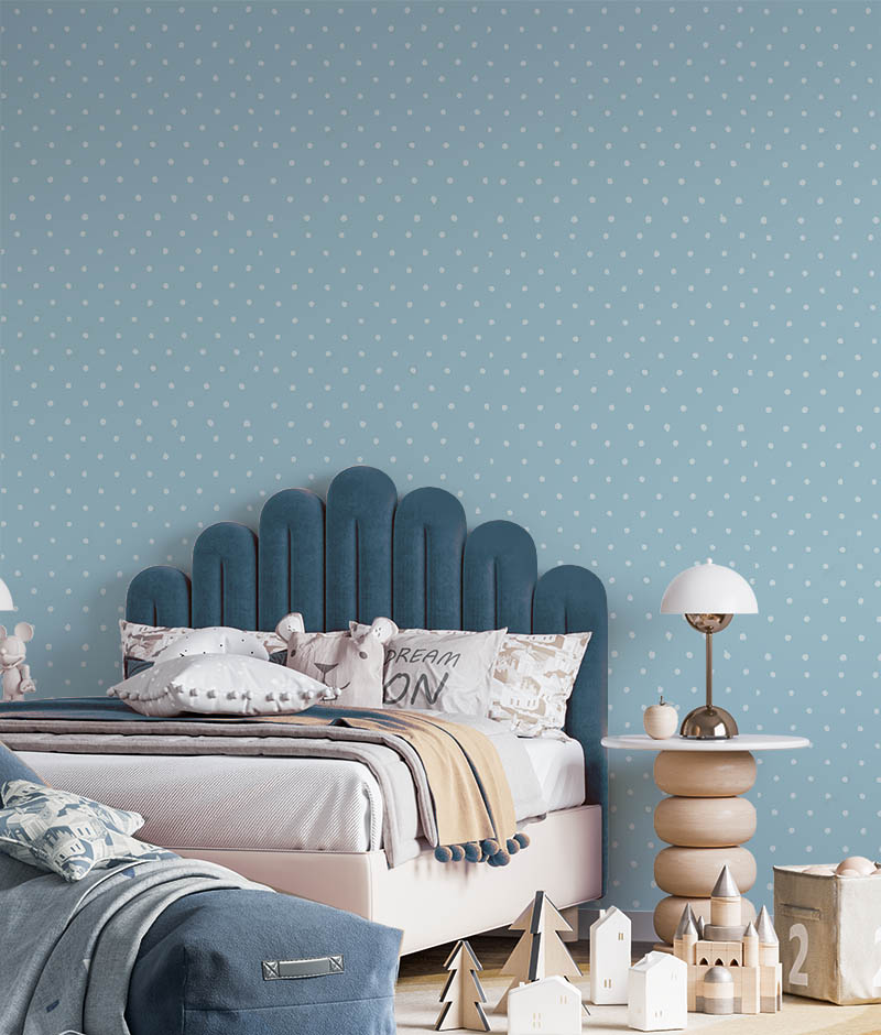 Mavi Beyaz Puantiyeli 16 M2 Çocuk Odası Duvar Kağıdı