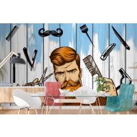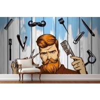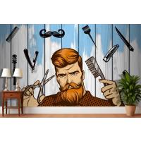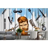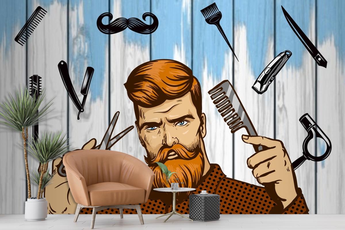 Mavi Boya Ahşap Arka Plan Erkek Berber Duvar Kağıdı