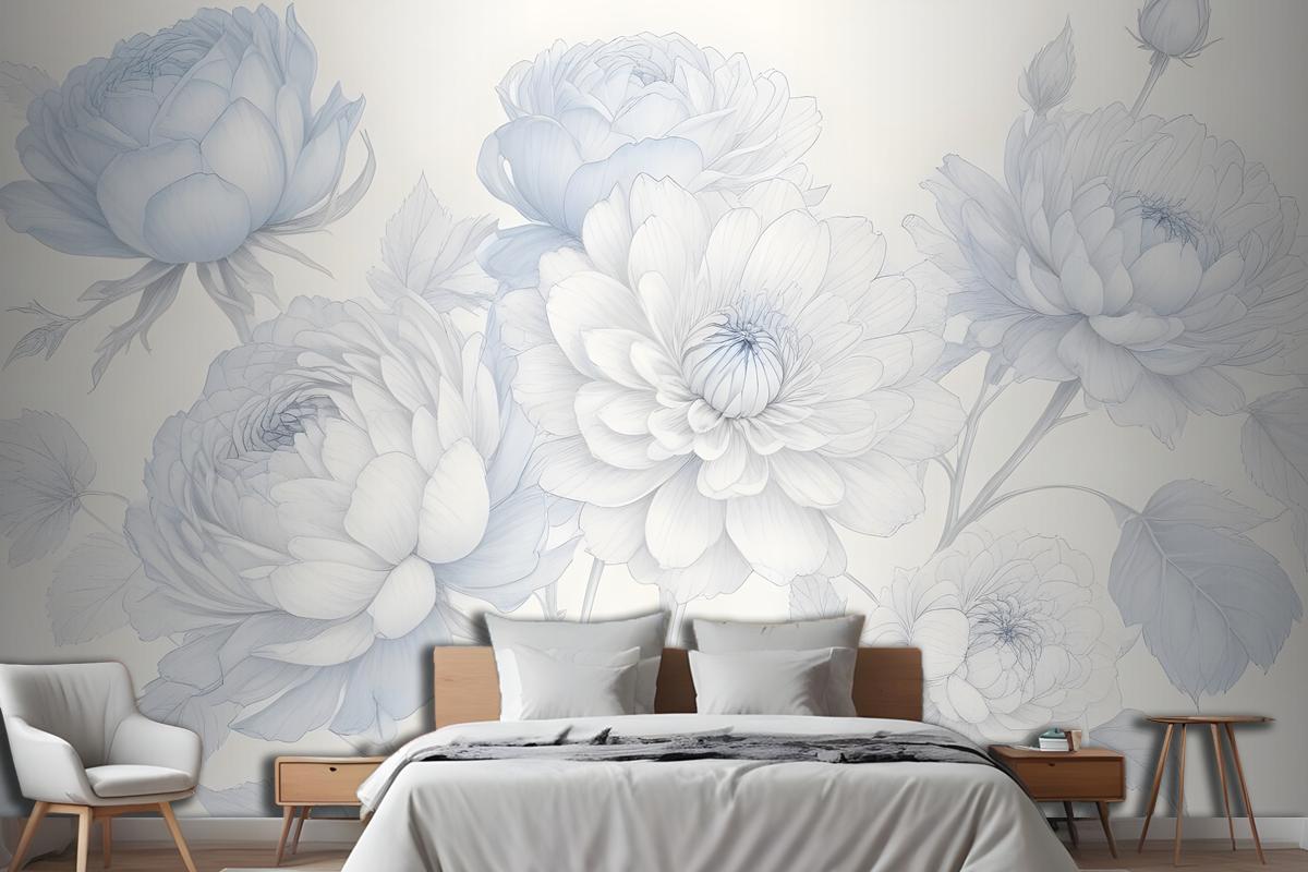 Mavi Büyük Resimli Güller Yatak Odası Duvar Kağıdı