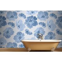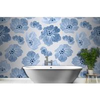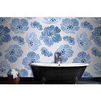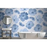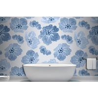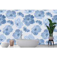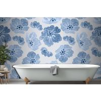 Mavi Çiçek Desenli Vintage Banyo Duvar Kağıdı