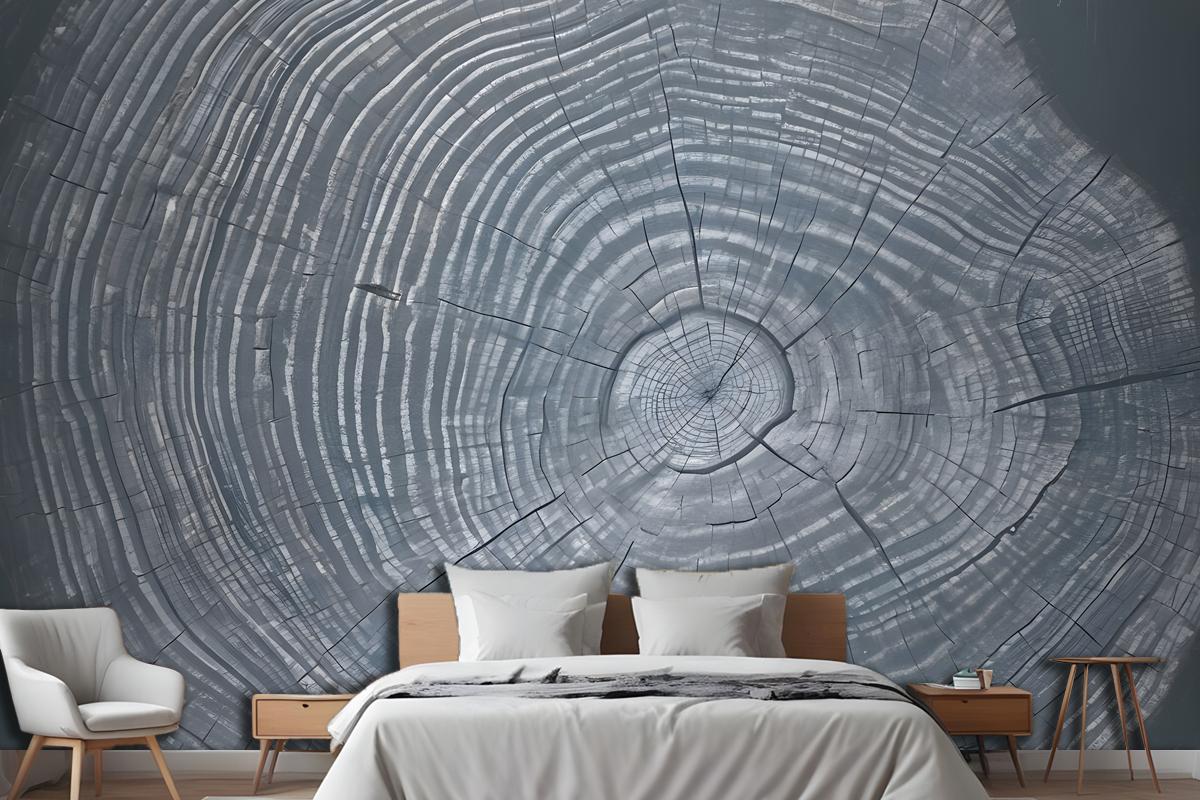 Mavi Gri Ahşap Tahıl Baskı Yatak Odası Duvar Kağıdı