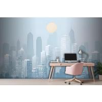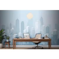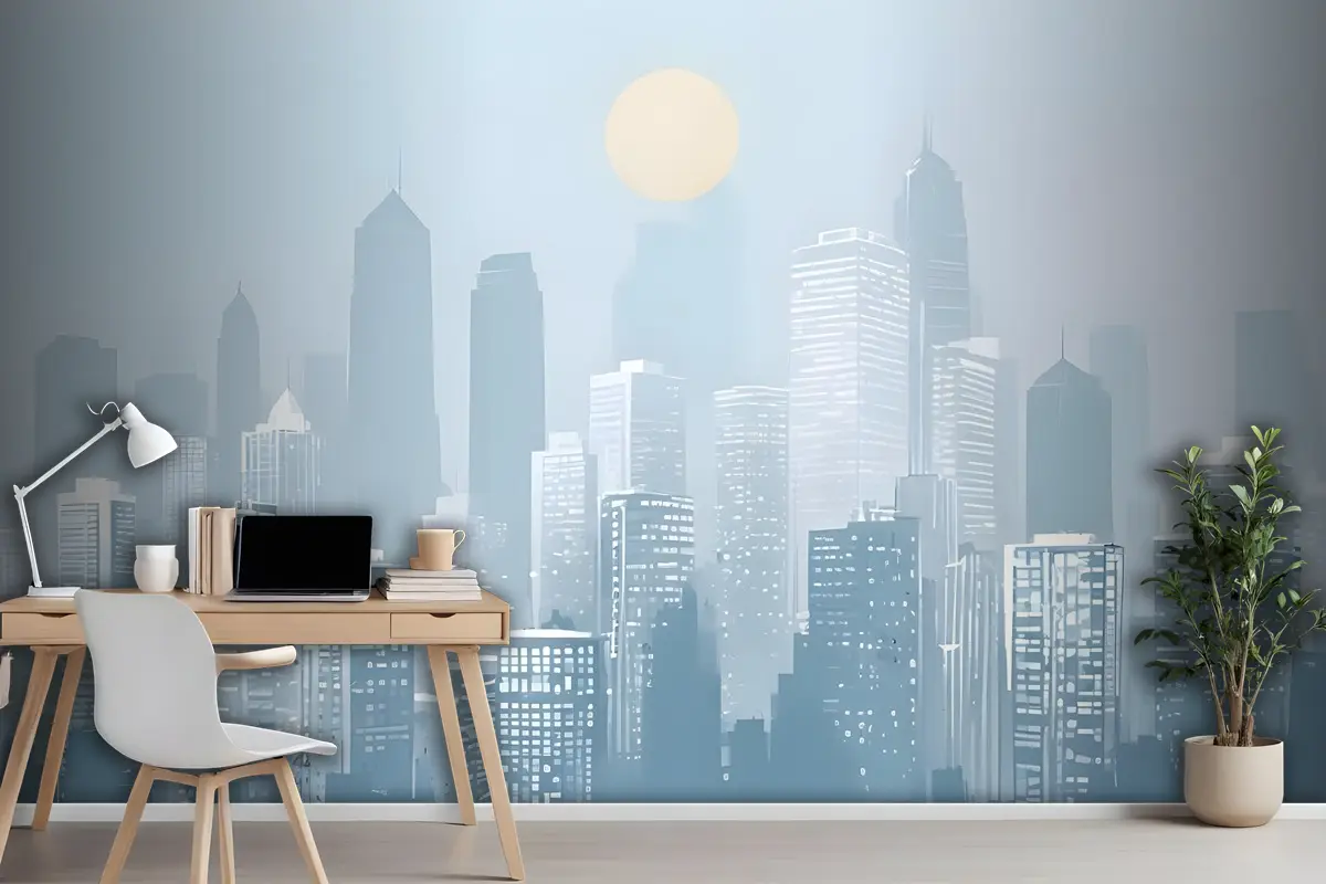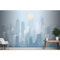 Mavi Monokrom Şehir Manzarası Ve Yumuşak Güneş Duvar Kağıdı