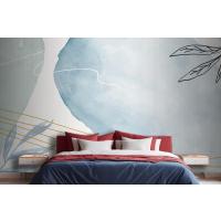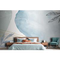 Mavi Suluboya Çiçek Arka Plan Yatak Odası Duvar Kağıdı