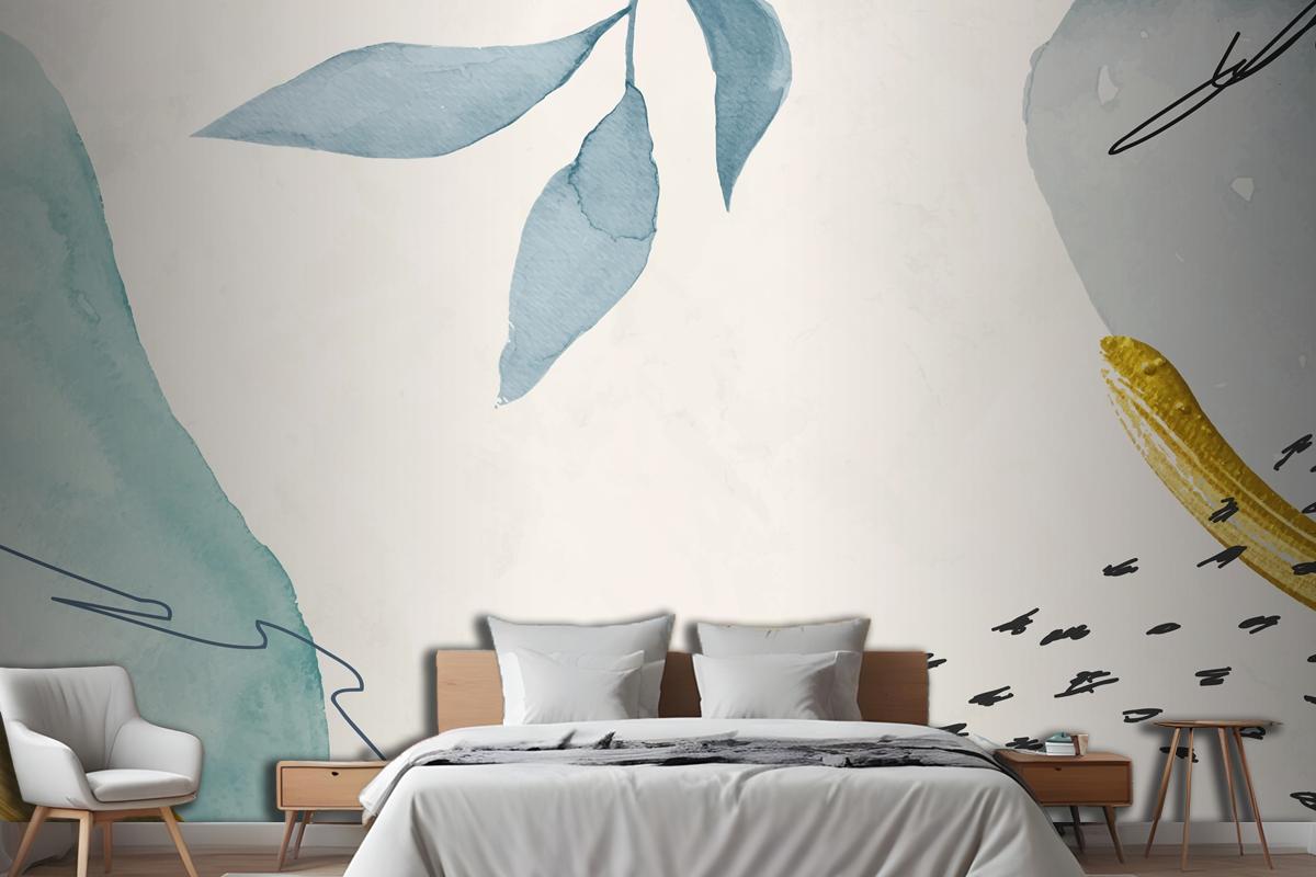 • Mavi Suluboya Çiçek Arka Plan Yatak Odası Duvar Kağıdı