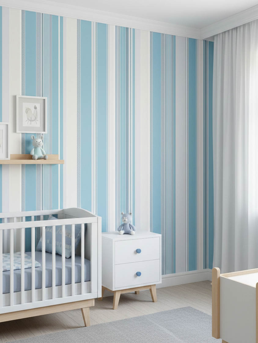 Mavi Tonlarında Çizgili Dokulu Ucuz Duvar Kağıdı 53508