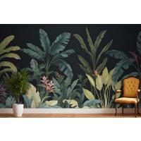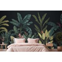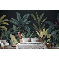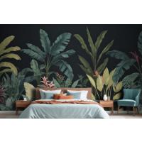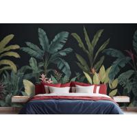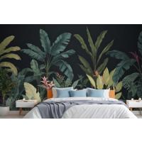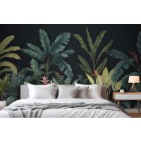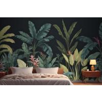 Mavi Ve Yeşil Koyu Tropikal Yatak Odası Duvar Kağıdı