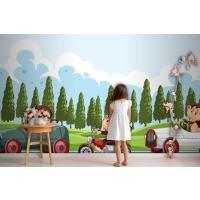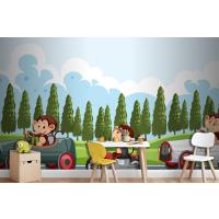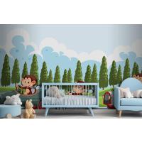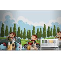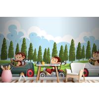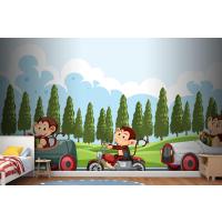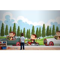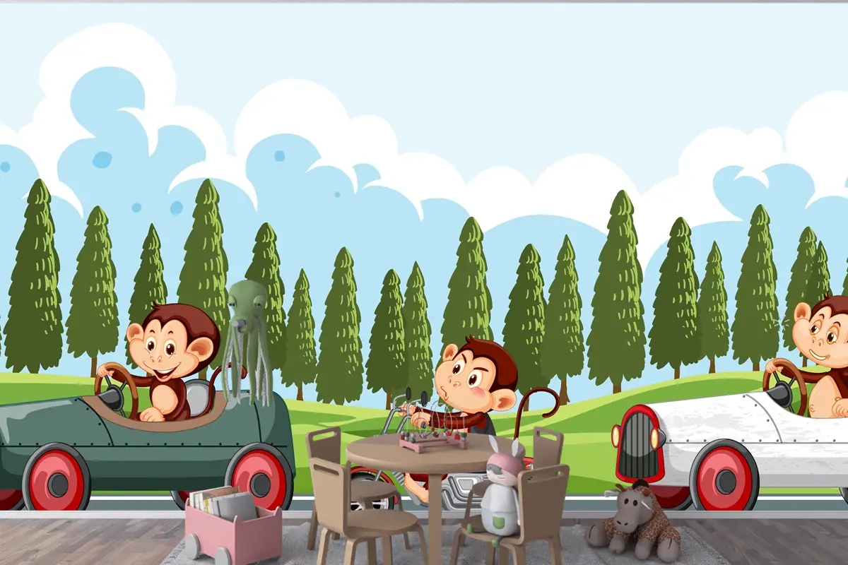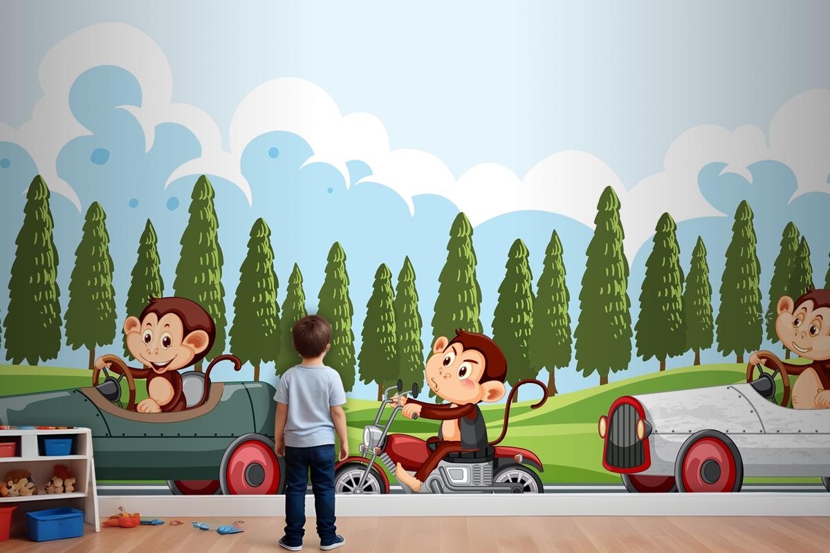 Maymun Yarış Sürücülerinin Bulunduğu Yarış Pisti Sahnesi Çocuk Odası Duvar Kağıdı
