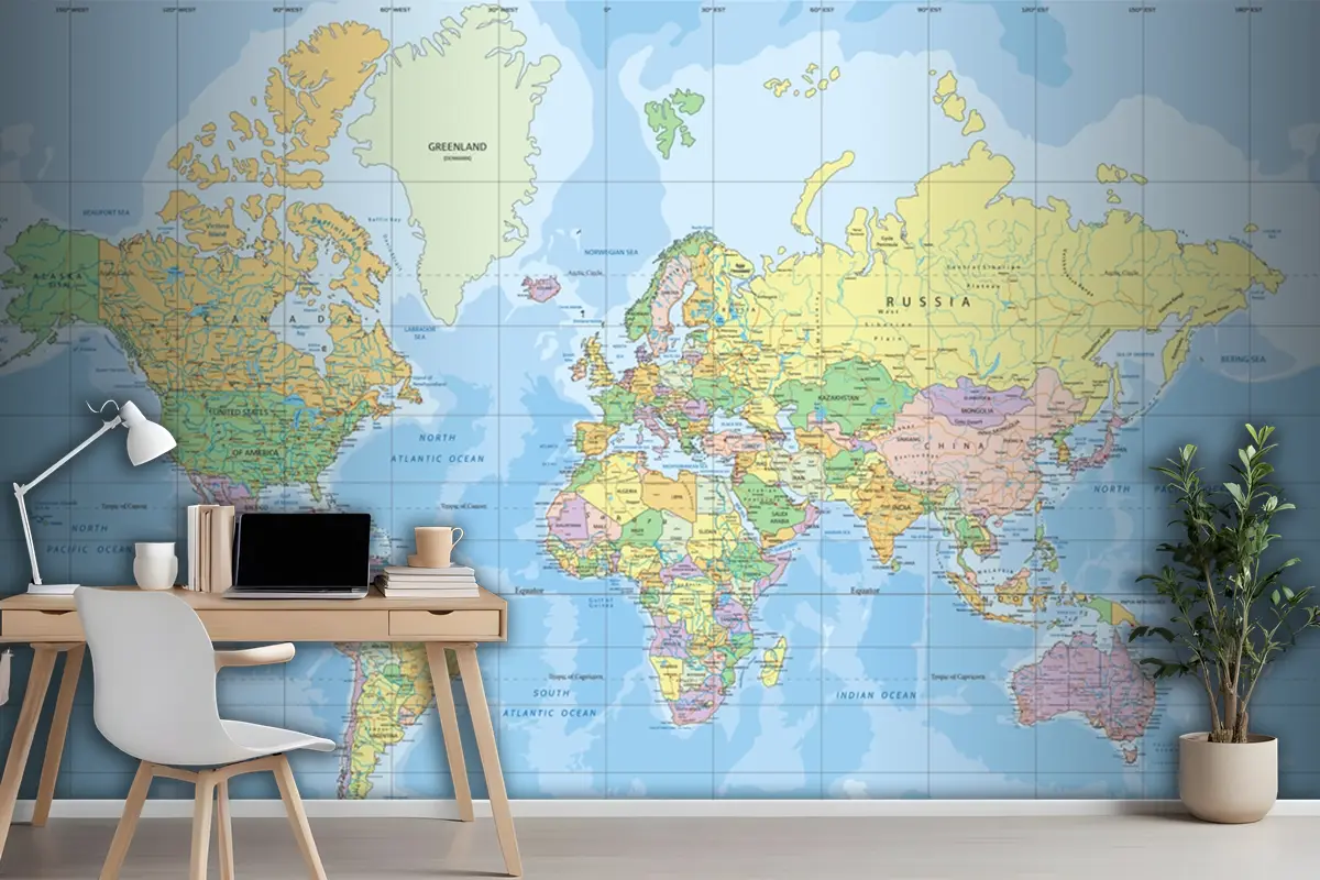 Mercator Projeksiyon Duvar Kağıdı Duvarındaki Siyasi Dünya Haritası