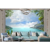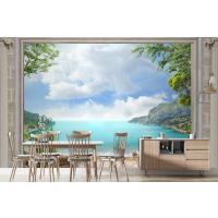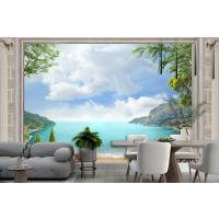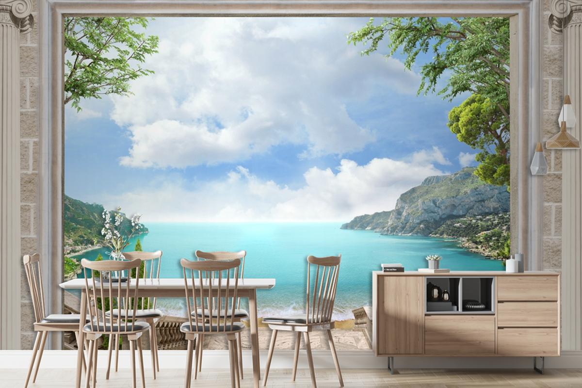 Mermer Sütunlu Deniz Manzaralı 3D Duvar Kağıdı