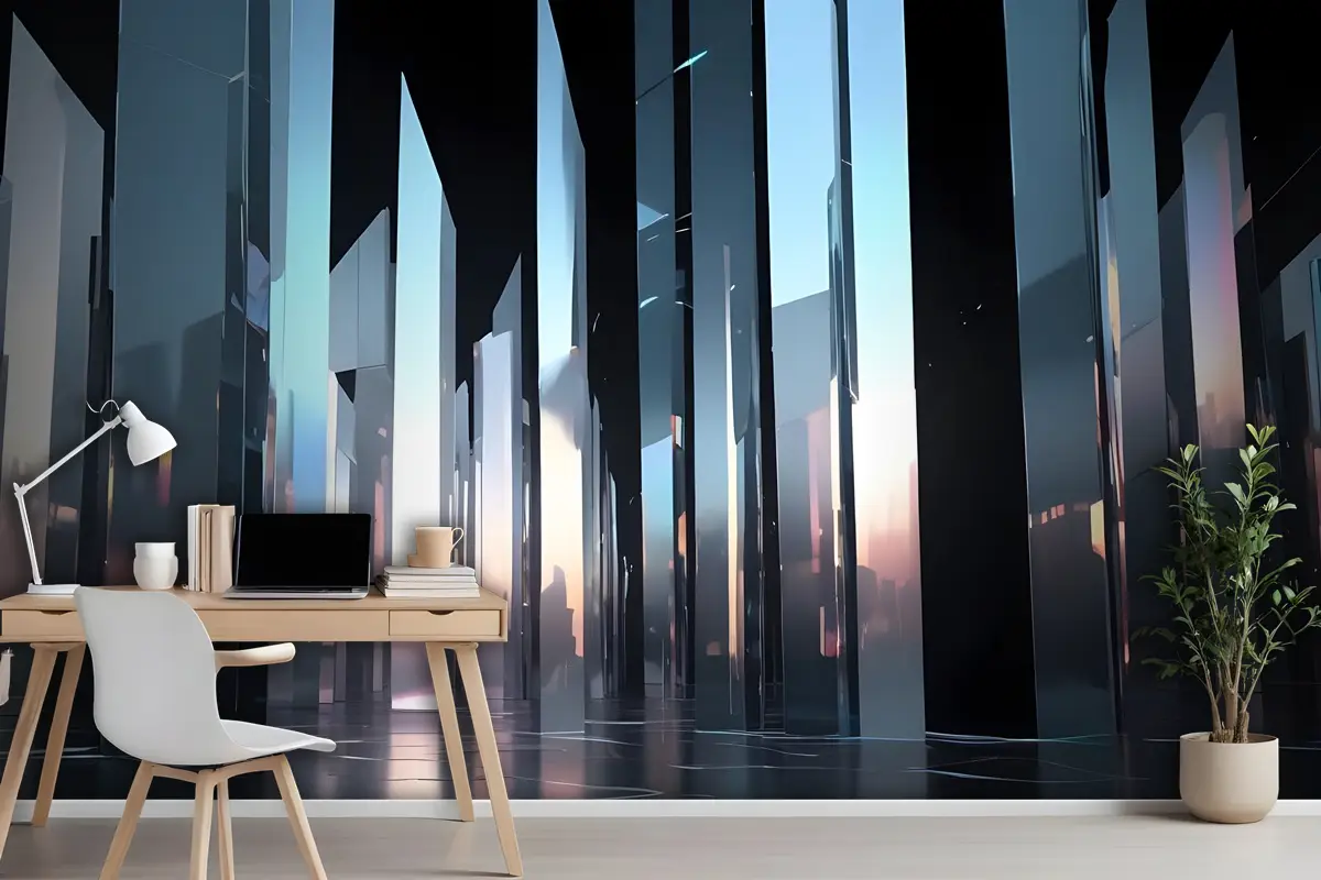 Modern Düz Siyah Beyaz Parlak Ve Yansıtıcı Atmosfer Işık Efektleri Duvar Kağıdı