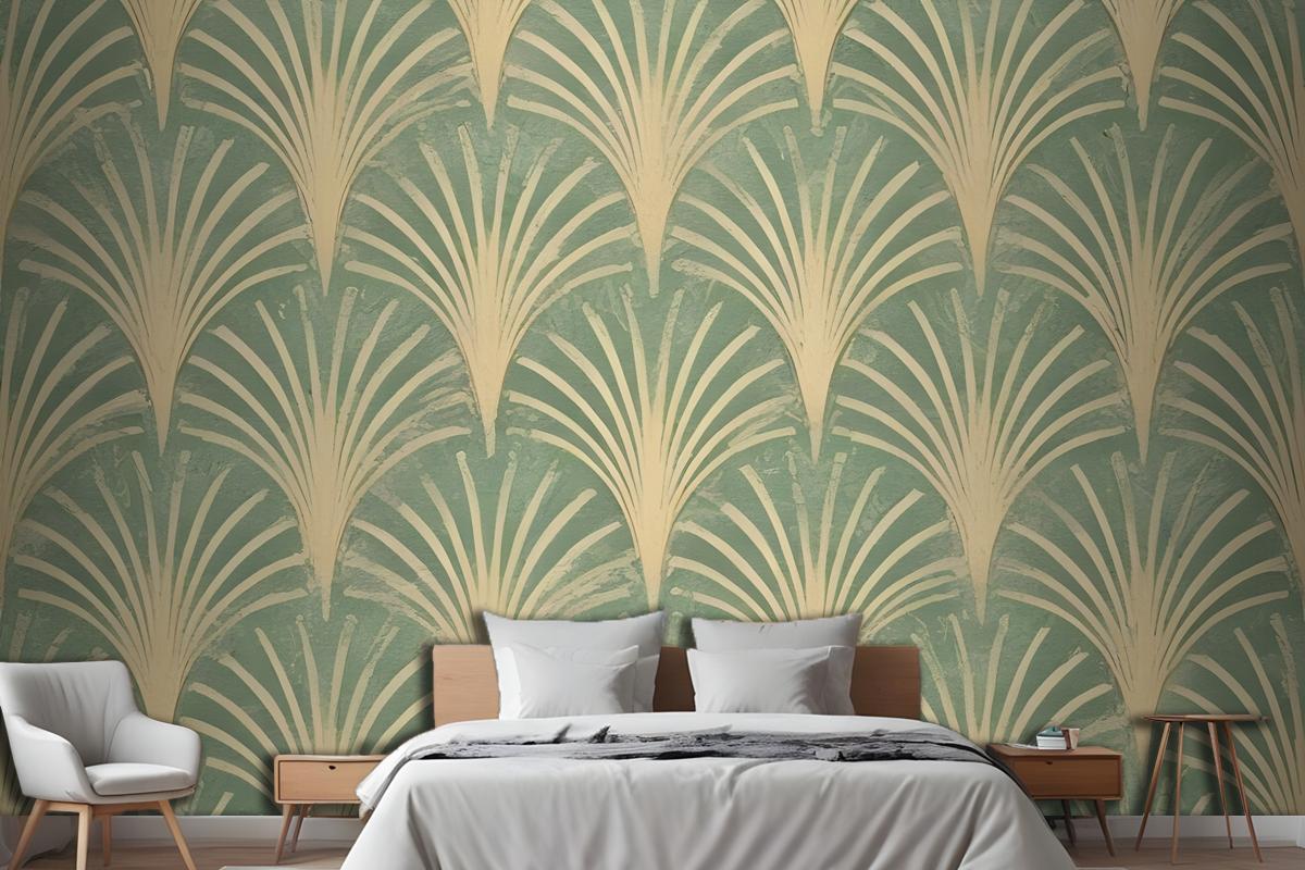 Modern Eau De Nil Art Deco Altın Çizgili Yatak Odası Duvar Kağıdı