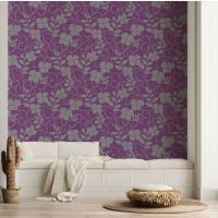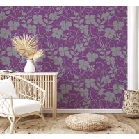 Mor Arka Plan Gri Çiçek Desen Ucuz Duvar Kağıdı 54104