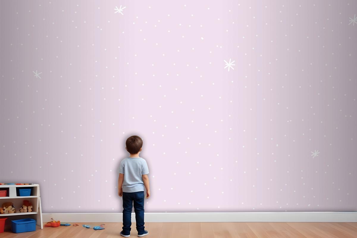 Mor Arka Planlı Minimal Yıldız Desenli Çocuk Odası Duvar Kağıdı