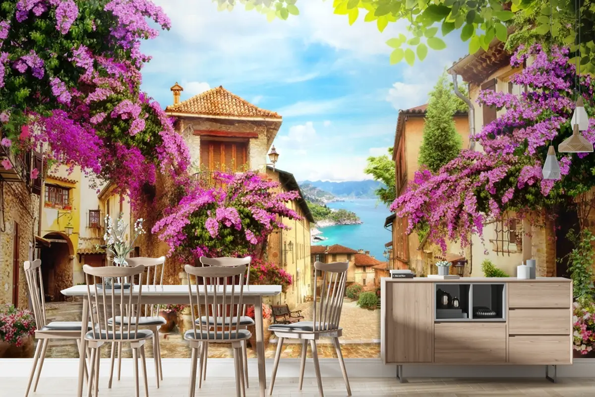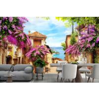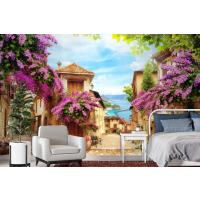 Mor Çiçekler Eski Şehir Manzara Duvar Kağıdı